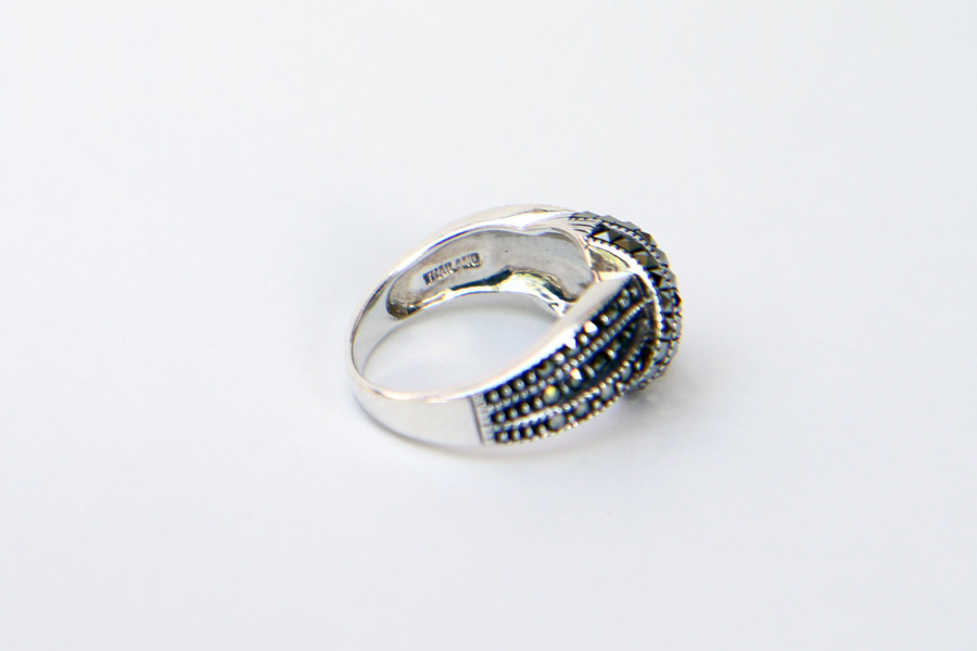 Sterling with Square and Round Marcasite Ring- Size 7. Excellent condition.
