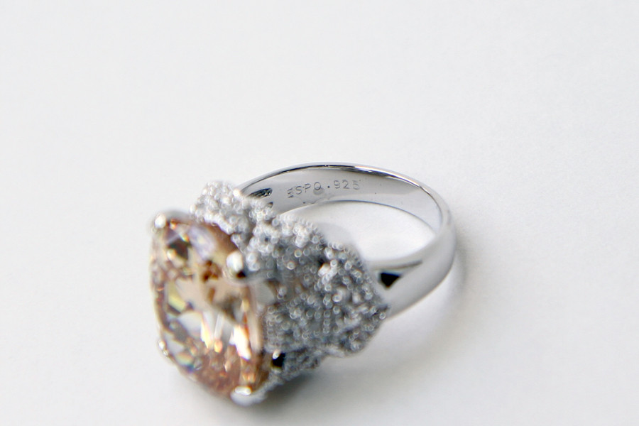 Here's another stunning Esposito Ring. This Sterling Silver ring has 61 Diamonique simulated diamonds that surrounds this beautiful large Canary Diamonique- Size 6.75 This is some serious BLING BLING...